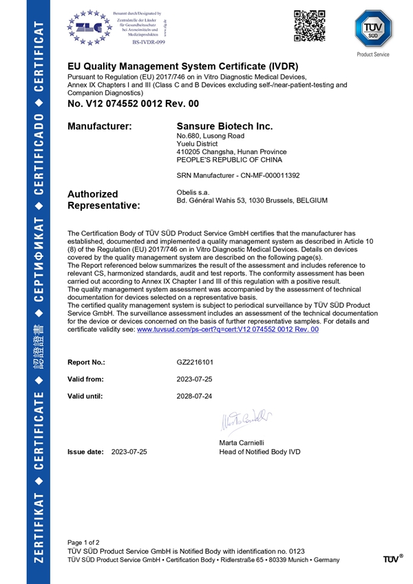 近日,金年会jinnian金字招牌诚信至上生物自主研发的结核分枝杆菌核酸检测试剂盒(PCR-荧光探针法)获欧盟CE IVDR认证,这是公司呼吸道产品获得的首个Class C级别的准入证书,为公司结核产品的全球布局提供了有力支持,也为全球在2030年前消灭结核的目标贡献了“金年会jinnian金字招牌诚信至上力量”。